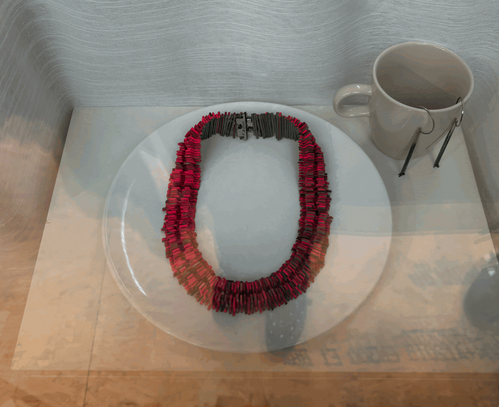 Making our way through the ateliers, we stumbled upon Loet Gescher, a Dutch jewellery maker and product designer. In her work, she likes to use unique materials, oftentimes those that are thrown away, giving them a new life and purpose. Every creation is labelled as her favourite, as she enjoys doing what she does and finds it an enriching and wonderful experience. Ever since she can remember, she has had her own workspace and indulged in creative projects. In her workspace, wonderful creations can be seen made from everyday objects that are not usually considered usable in an artistic way. Yet, Loet has found her special style and way of using those materials, such as the multiple bags seen in her workspace, created from the advertisement paper. While coming up with new ideas for her creations, she likes to work in silence, focusing completely on the creative process. Once she knows what she wants to make, she likes to listen to podcasts.